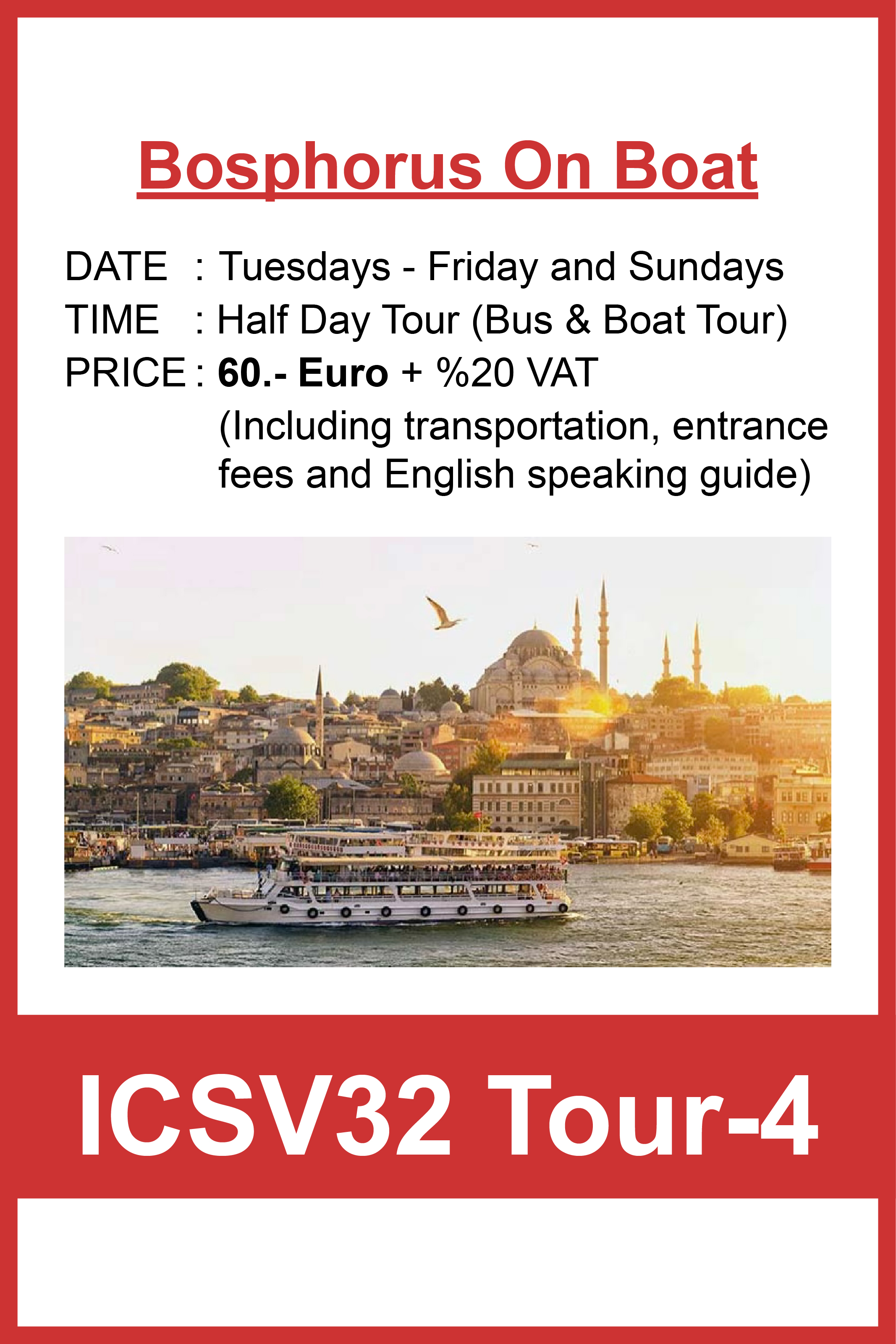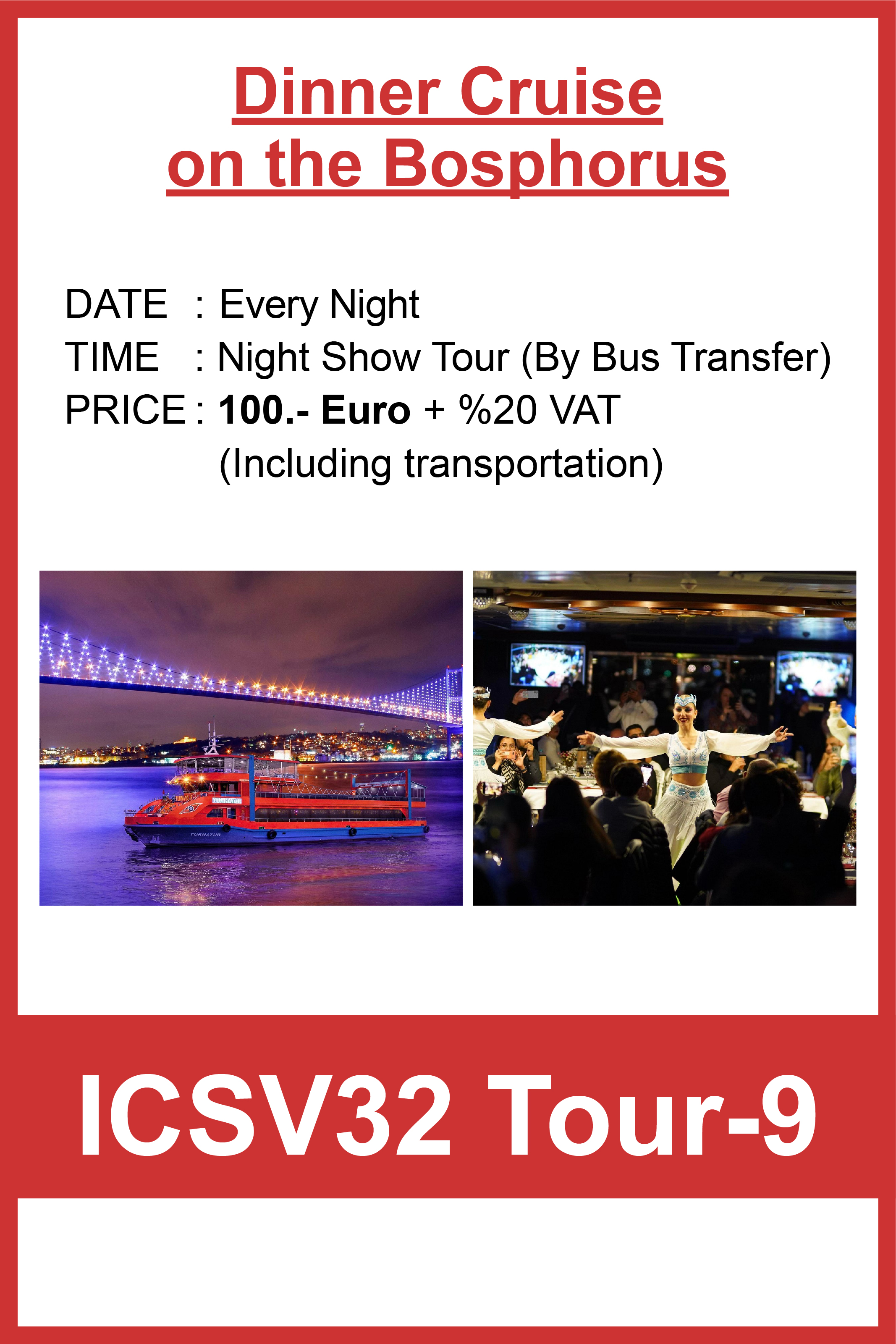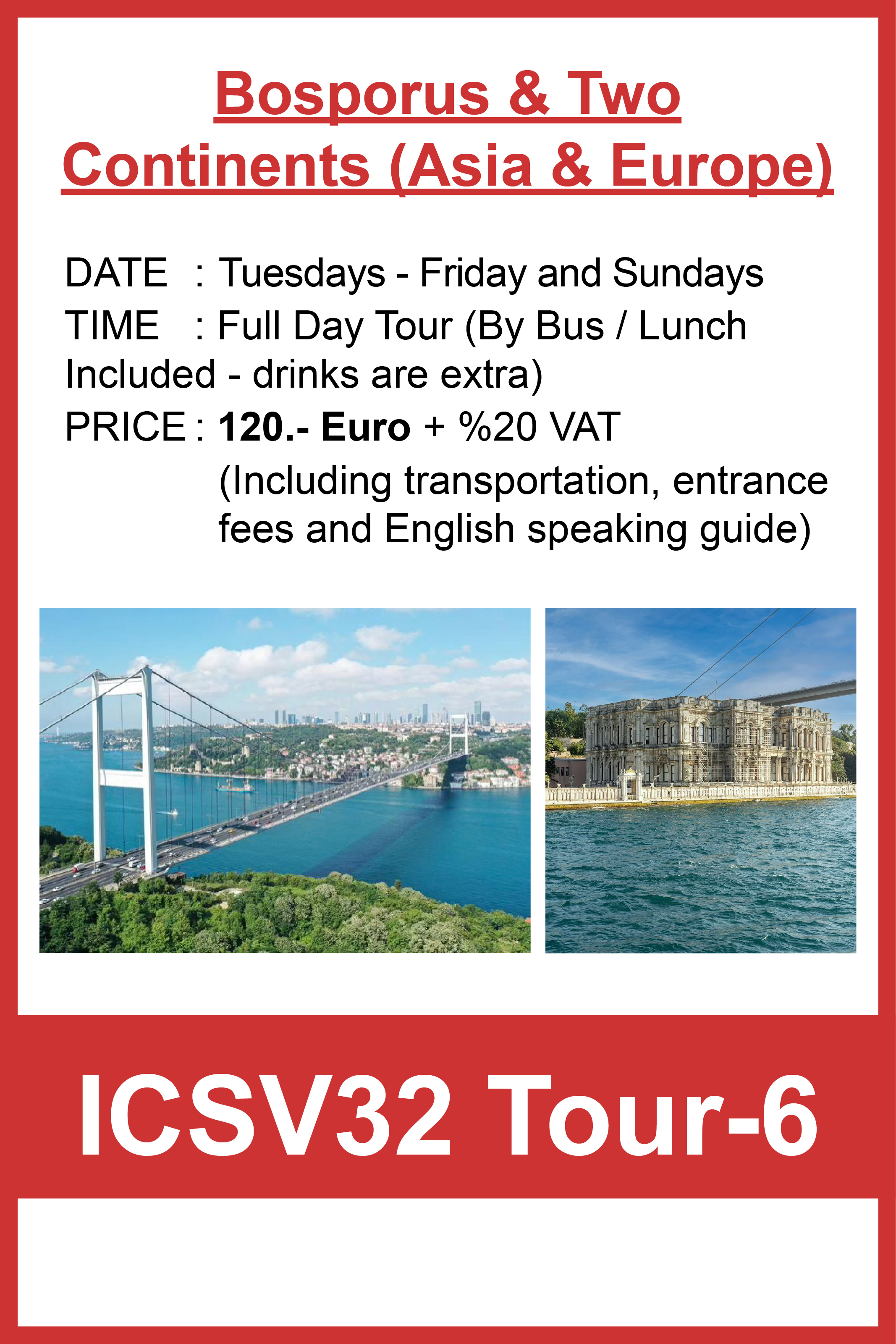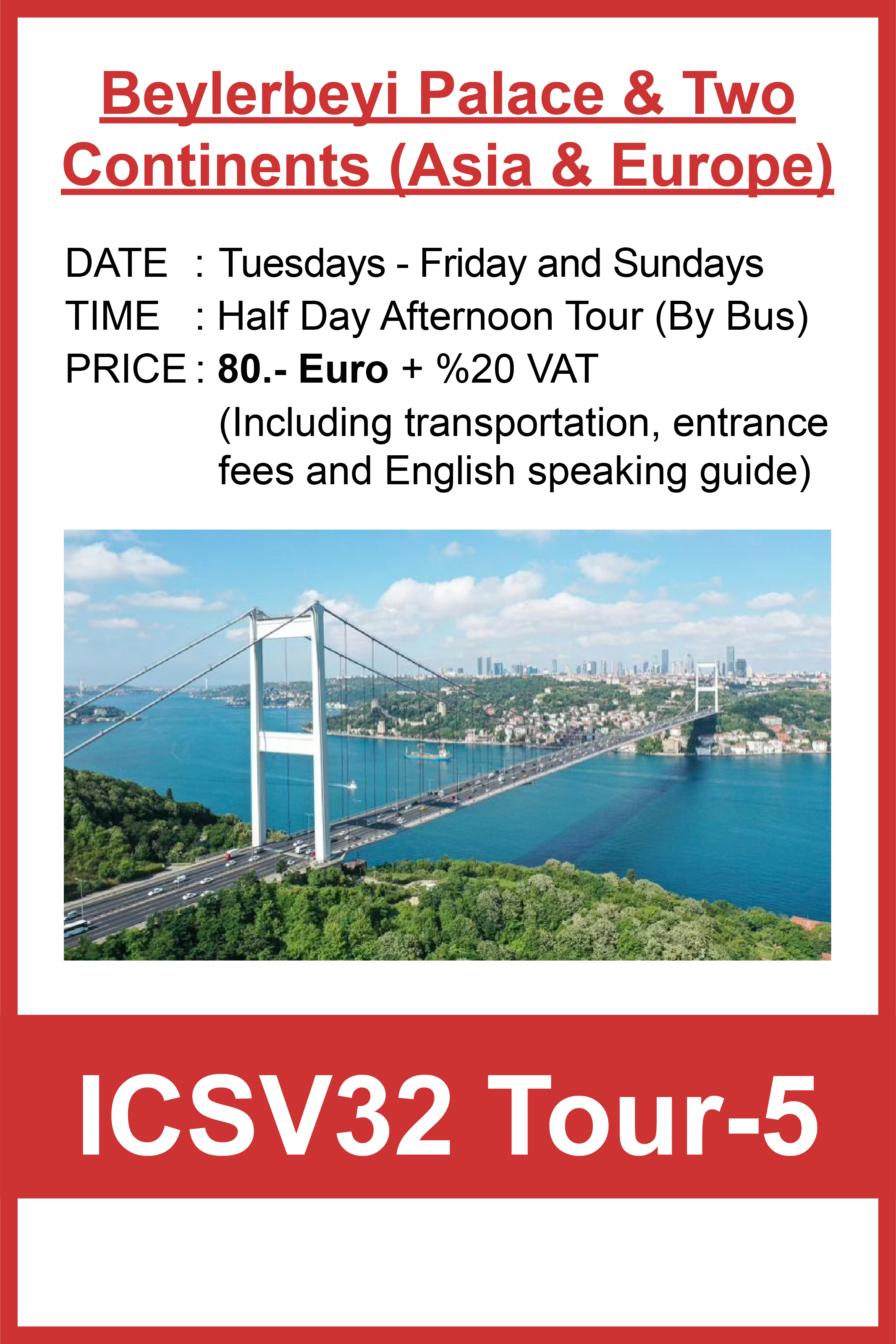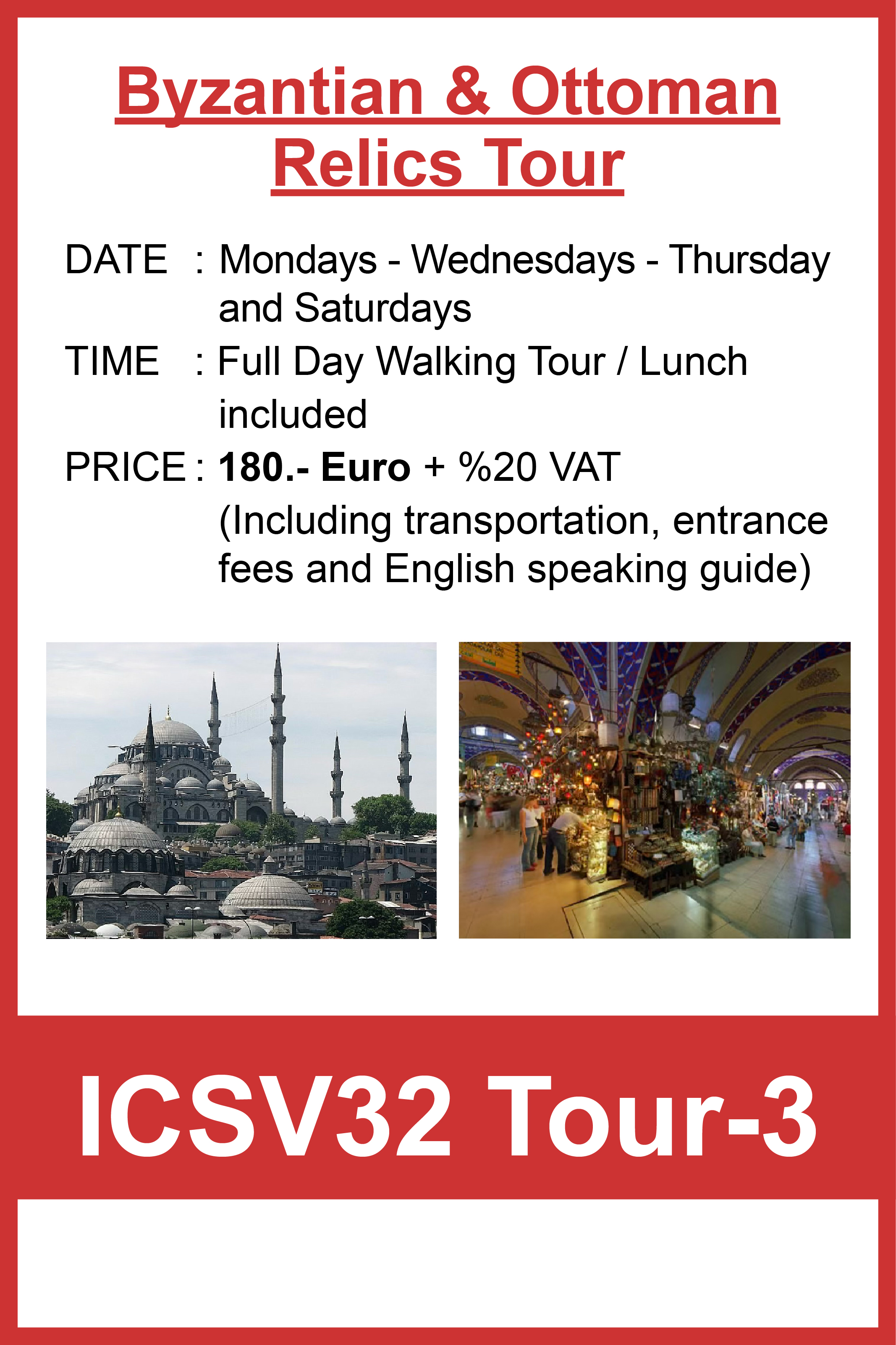 We hope you enjoy a wonderful stay in Istanbul. If you would like to arrange a private tour or request alternative services, please feel free to contact our PCO, Bright Tourism & Organization, and we will be happy to assist you.